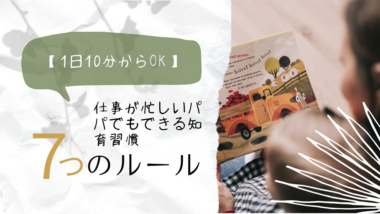 この記事では、忙しいパパでも今日からできる知育習慣を7つ紹介します。まとまった時間がなくても大丈夫です。1日10分から始められるものばかりです。